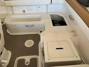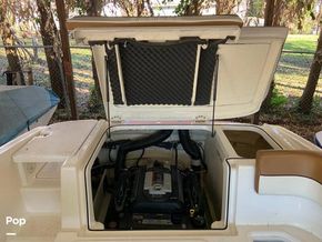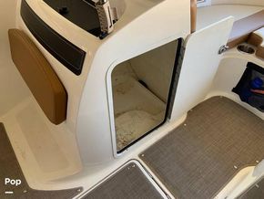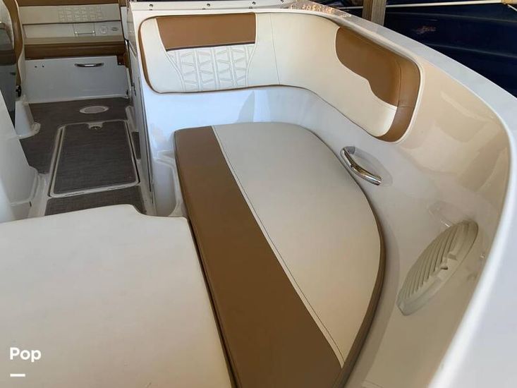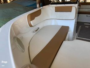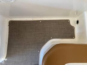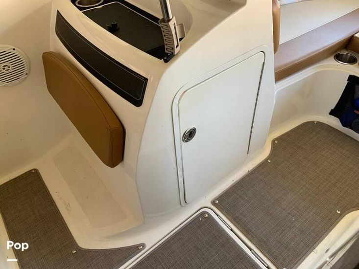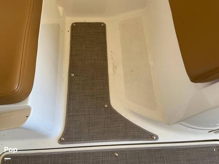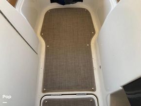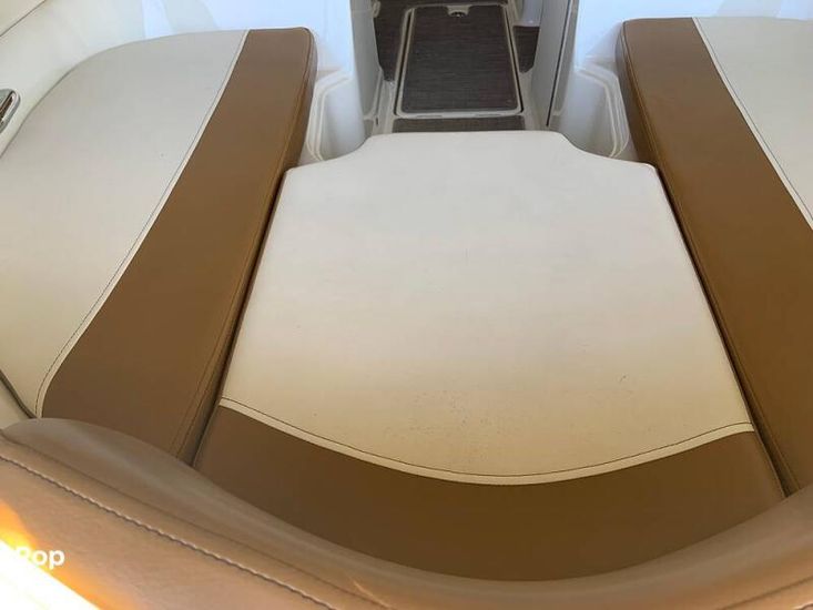 The VR5 features a large aft sunpad with a convertible rear lounger as well and it features a foldup section allowing you to pass from the cockpit to the swim platform without stepping on the cushions. The swim platform has seadek cushioned flooring and the cockpit on this one features the snap-in sea grass flooring.