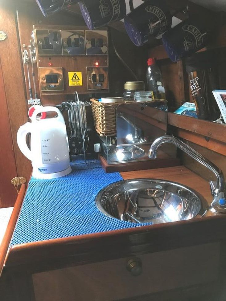 She boasts a hot and cold pressurised water system, stainless steel water tank, an emersion heater, to a single wash basin in the galley area.