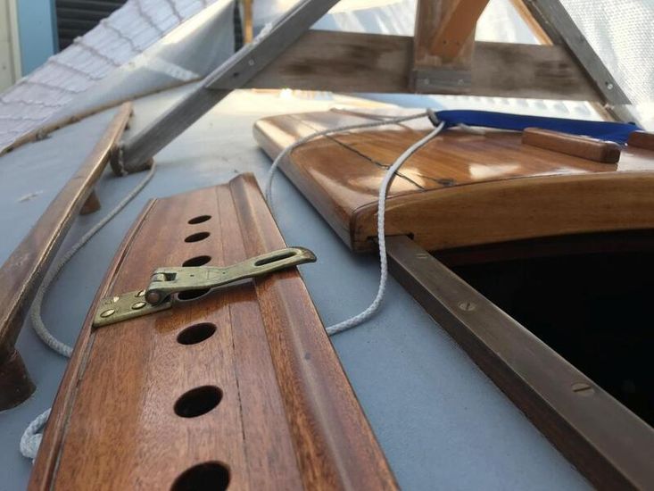 Decks are Pitch Pine planked covered with marine ply, epoxy sheathed and painted with nonslip paint finish.