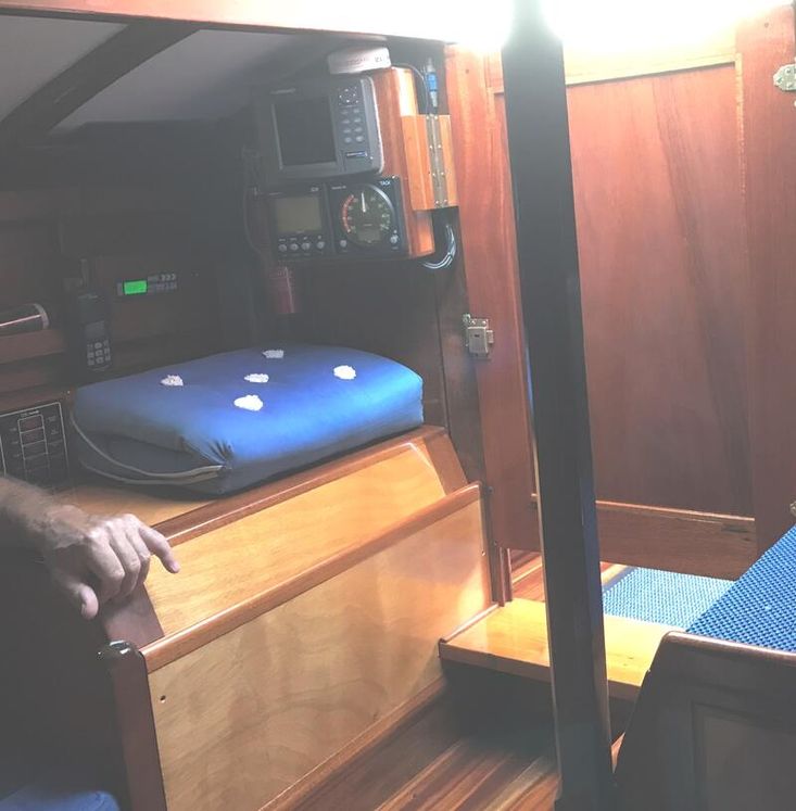 The cabin has been likened to a Tardis. It has been beautifully reworked. Mostly varnished mahogany with a new panelled deck head.