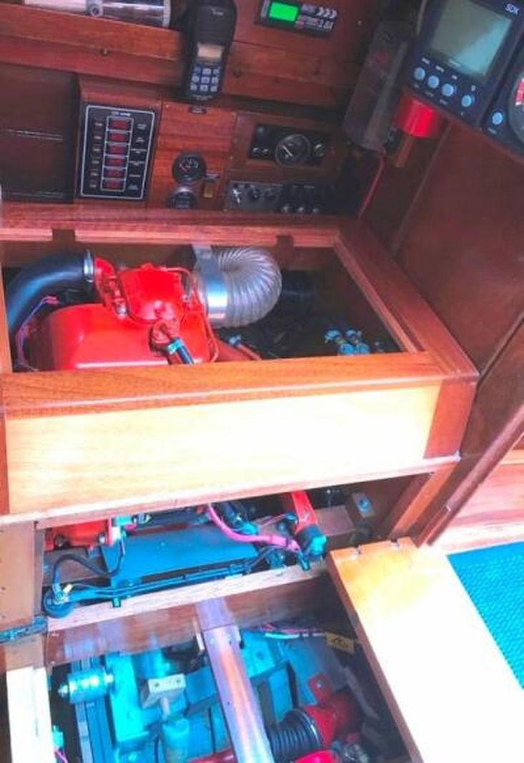 A Lister Petter AC1 diesel engine 6hp. Inboard. sited internally within an engine box, on the starboard aft quarter. Shaft driven to a single twin bladed feathering propeller. Newly installed 2018.After her major overhaul.