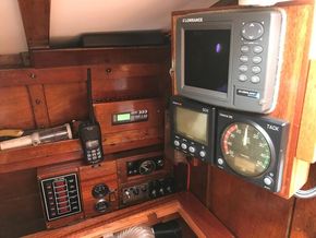 Navigation gauges mounted on a swing out board, to be seen whilst on the helm.